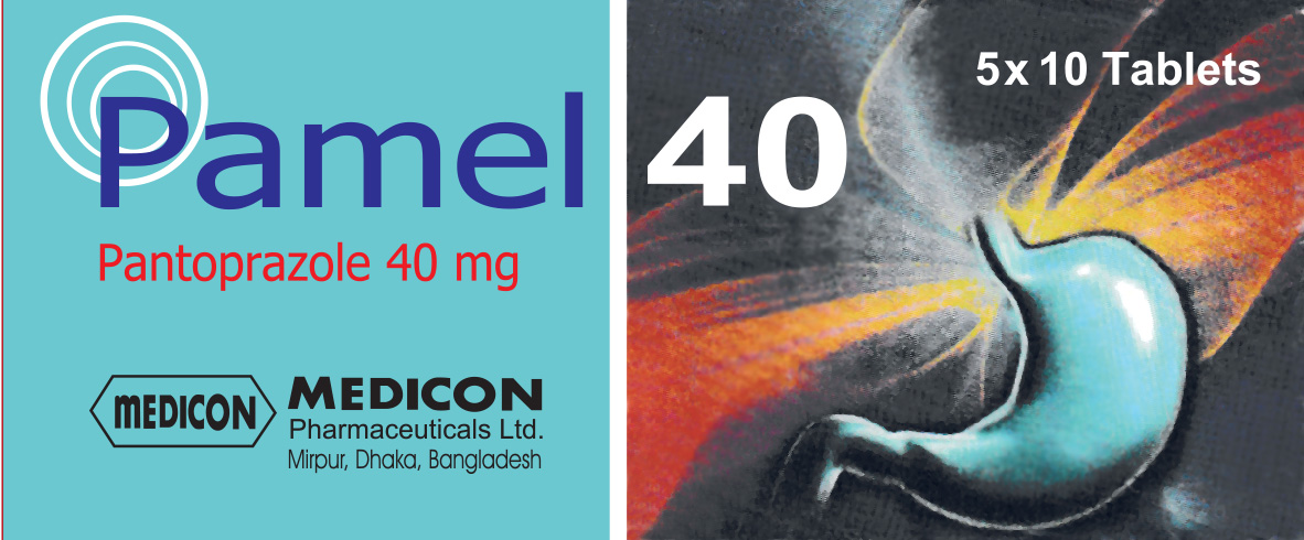 Pamel 40 Tablet: Each enteric coated tablet contains Pantoprazole Sodium Sesquihydrate INN equivalent to Pantoprazole 40 mg.